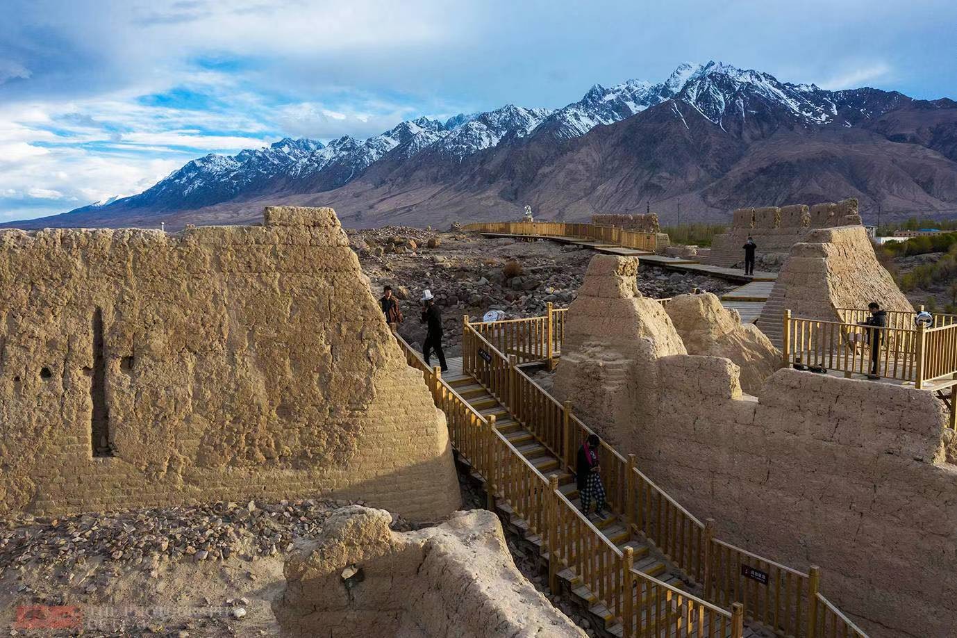 The location of Stone City has a superior geographical environment: there is a grassland under the city, surrounded by several grasslands. In ancient times, several mountain roads from Kashgar, Yingjisha, Yecheng, Shache to the Pamir Plateau all gathered here. To the west, several major mountains in Central Asia, such as Hongqila Dapan, Mingtie Gaidaban, and Wahkiridaban, were also accessible through natural valley roads. The city is a strategically important castle on the ancient Silk Road and has been designated as a key cultural relic protection unit of the autonomous region. Although only ruins remain in Stone City, it is surrounded by snow capped peaks, grassy beaches, and rivers, and has a strong Tajik ethnic flavor, exuding a rugged and unrestrained beauty