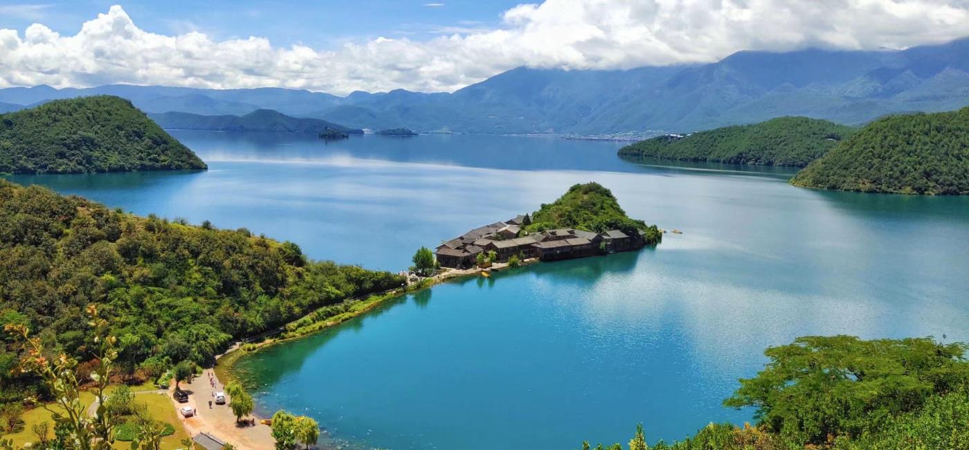 In the afternoon, participate in a 360 ° car tour around the lake This includes "Xiaoyuba Village, Lover's Beach, Crocodile Island Observation Deck, Lige Peninsula Observation Deck, Nisai Bay", taking a car to Luyuan Cliff (i.e. the water source of Guhu Lake), entering the Dacheng Village Scenic Area (distant view of Dacheng Island) to watch the 10000 acre Caohai Wedding Bridge (Caohai cannot be visited due to transportation inspections in Sichuan scenic area and cannot be refunded); passing through Langfang Village and Sanjia Village in Yunnan, in the evening, participating in a bonfire party with local hospitable Mosuo young men and beautiful and generous Mosuo girls.